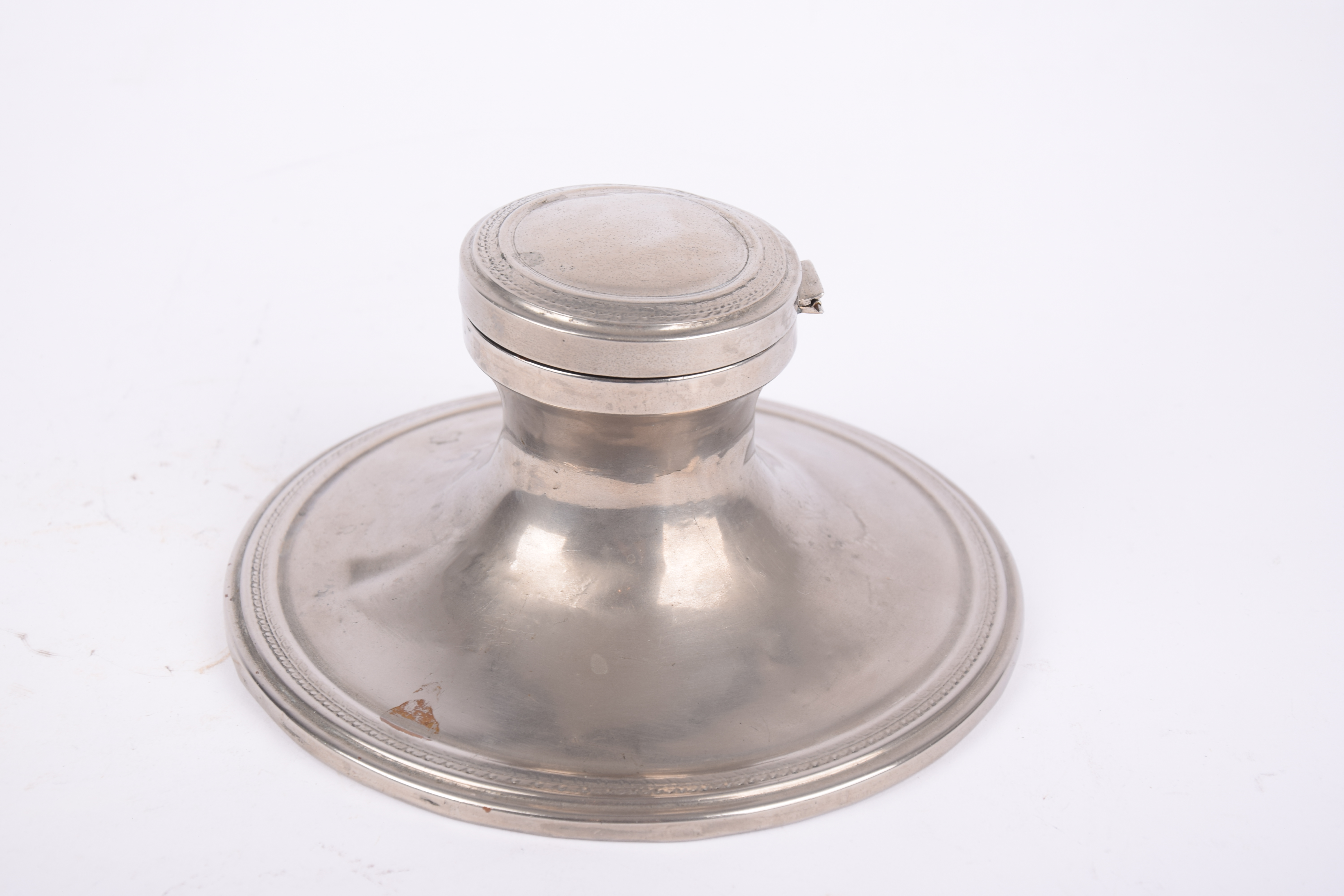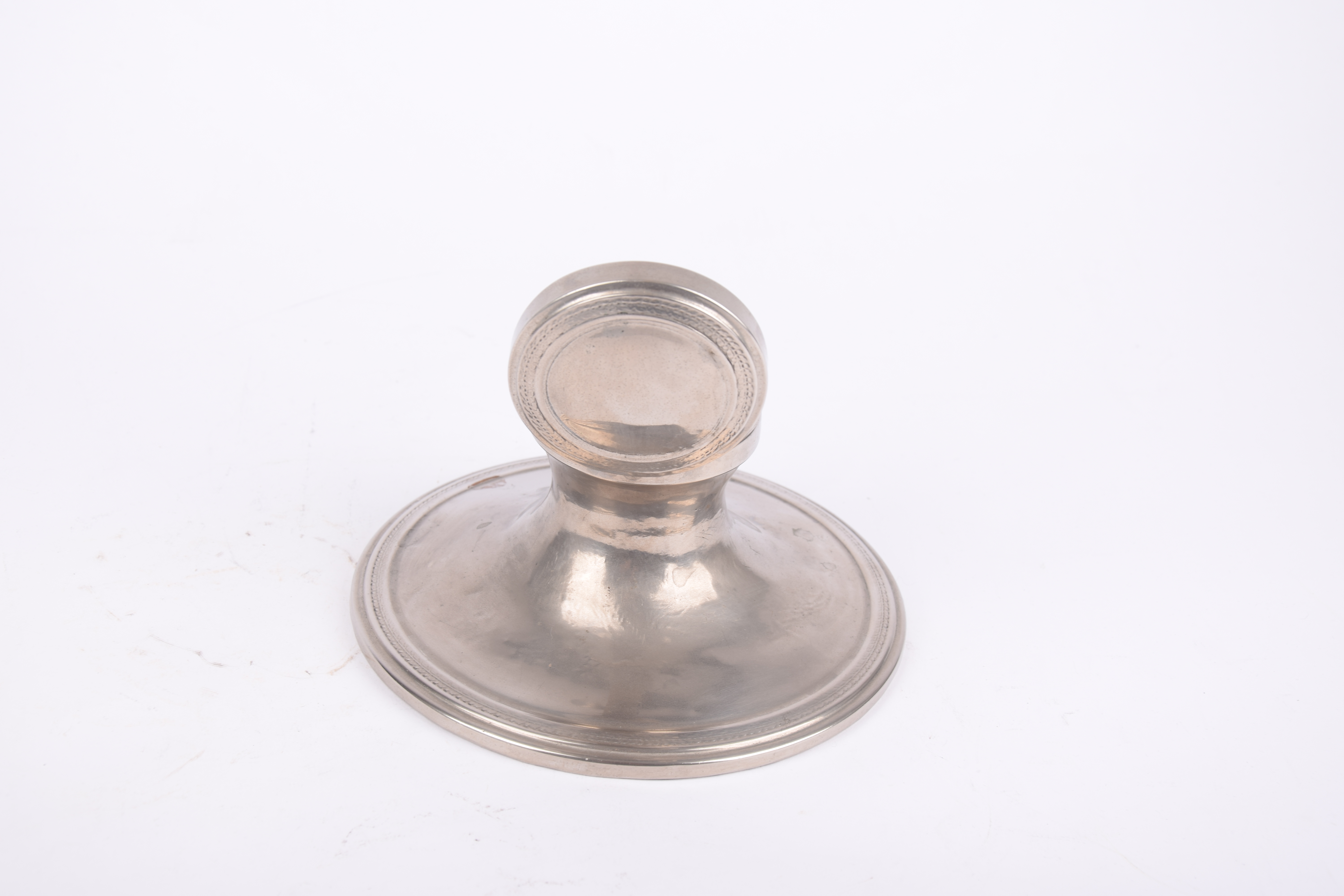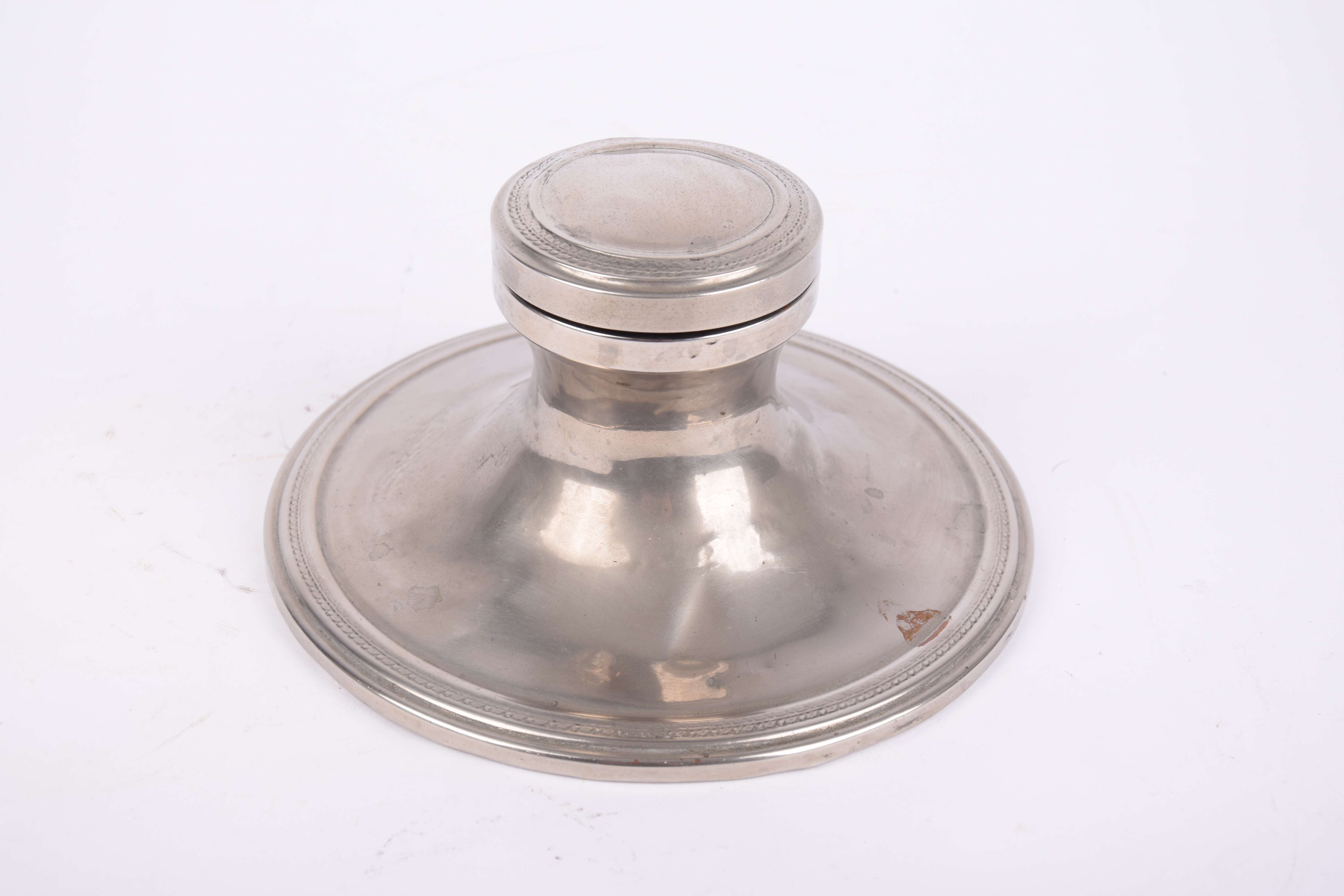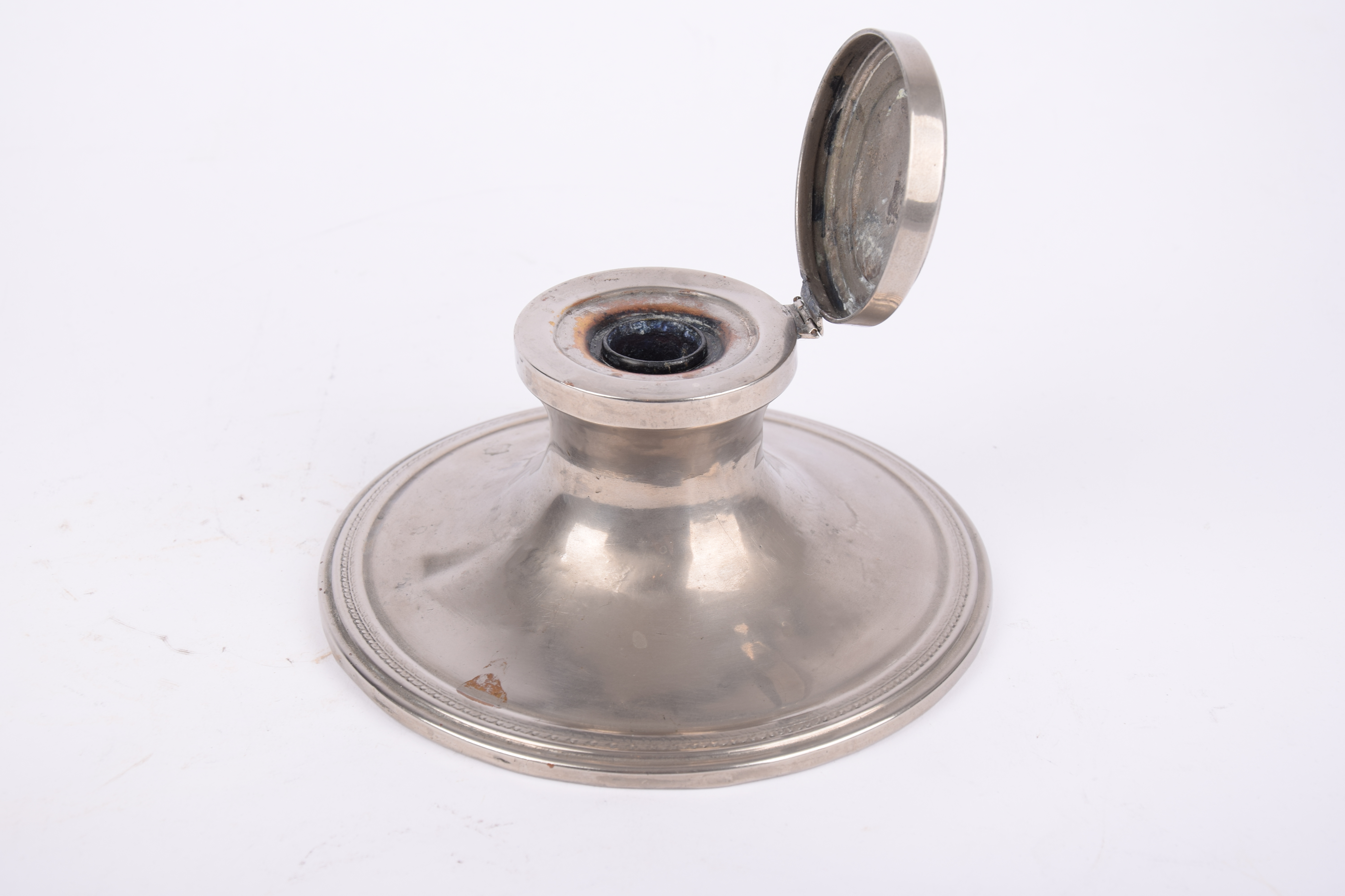 Origineel metalen inktpot aanwezig, natuurlijk met inktresten.
