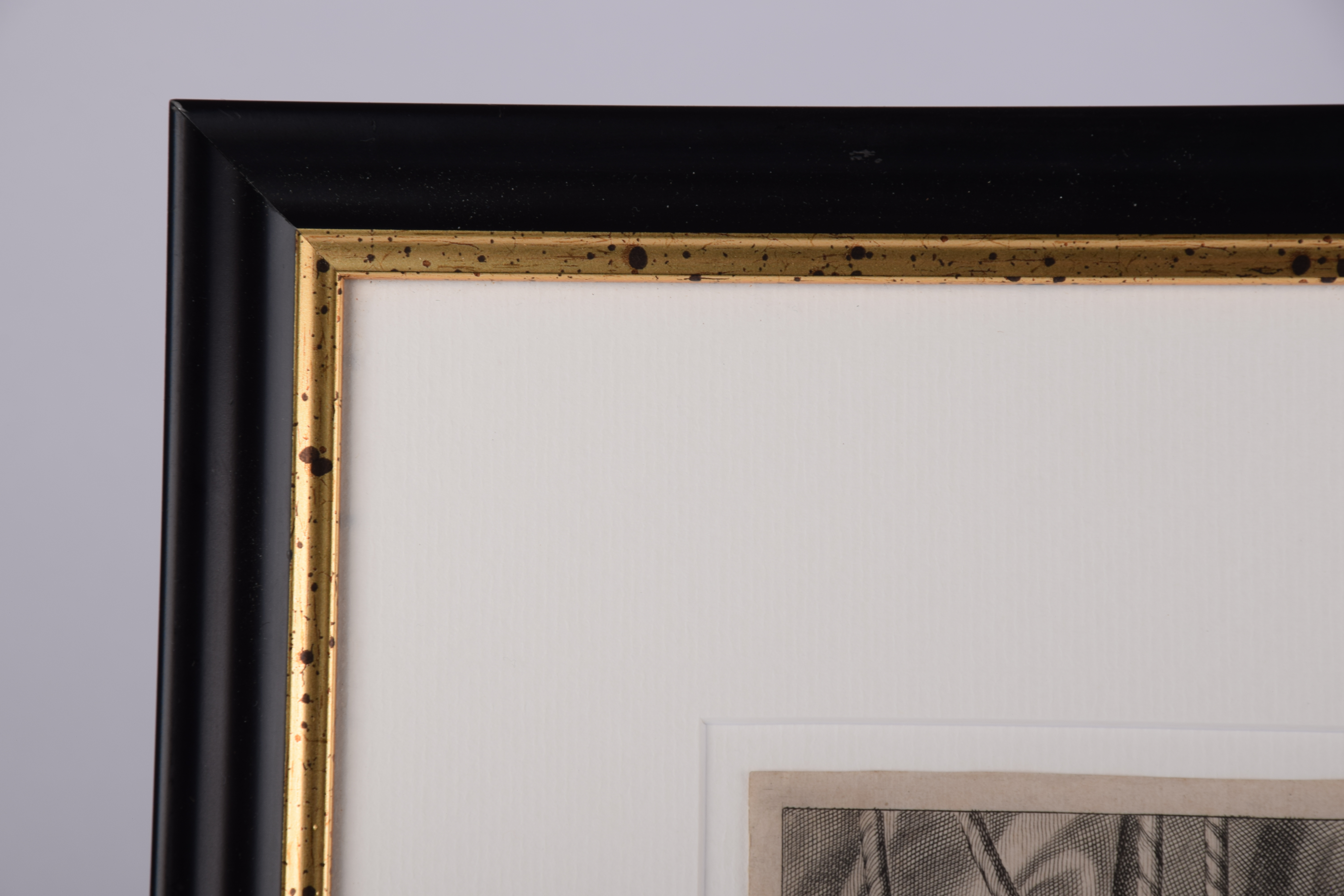 In prima en perfecte lijst met passe-partout en glas: H. 69 x B. 63 cm.