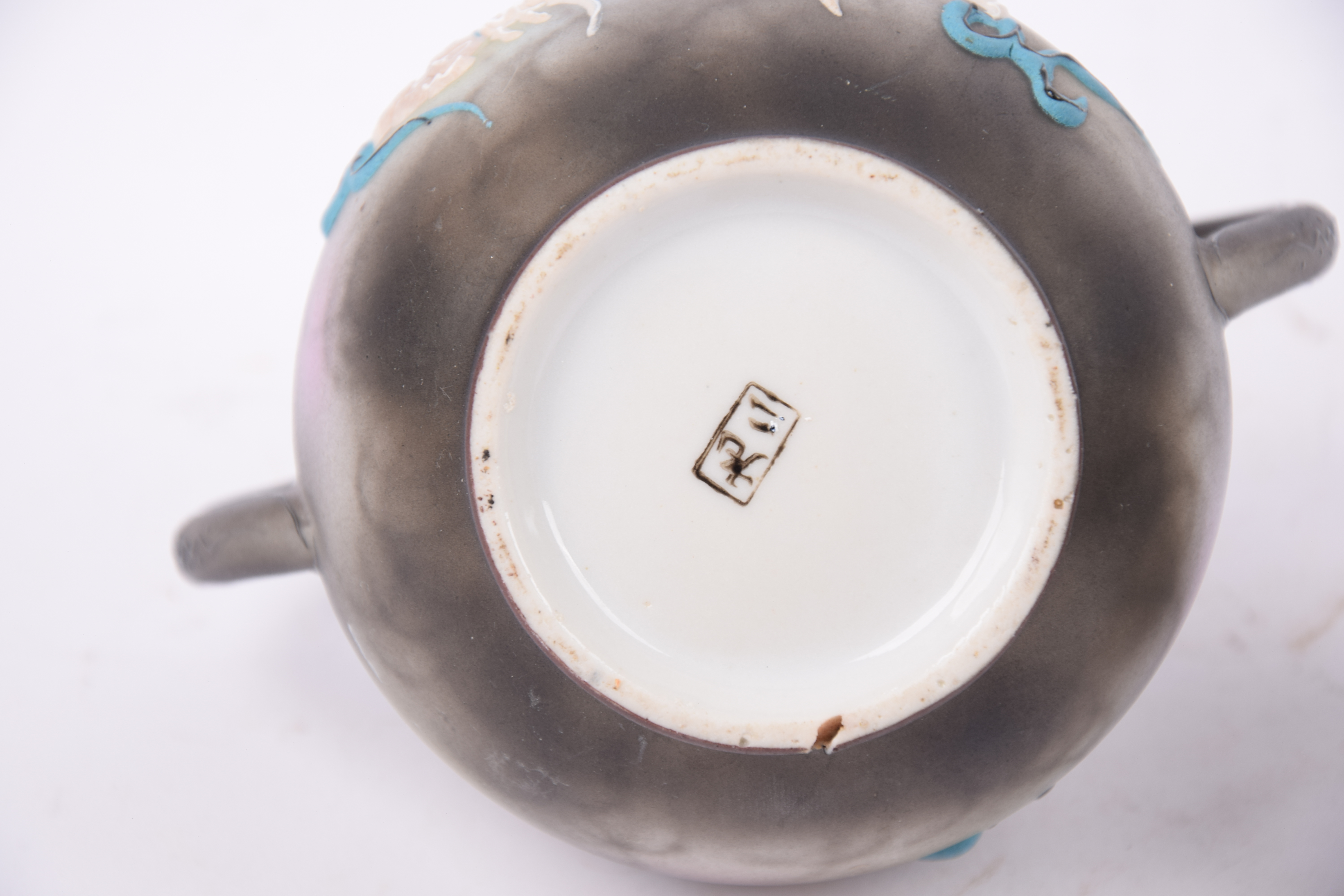 De markering is een handgeschilderd Japans karaktermerk, typisch voor porselein uit de regio Kyoto of Satsuma uit die tijd.